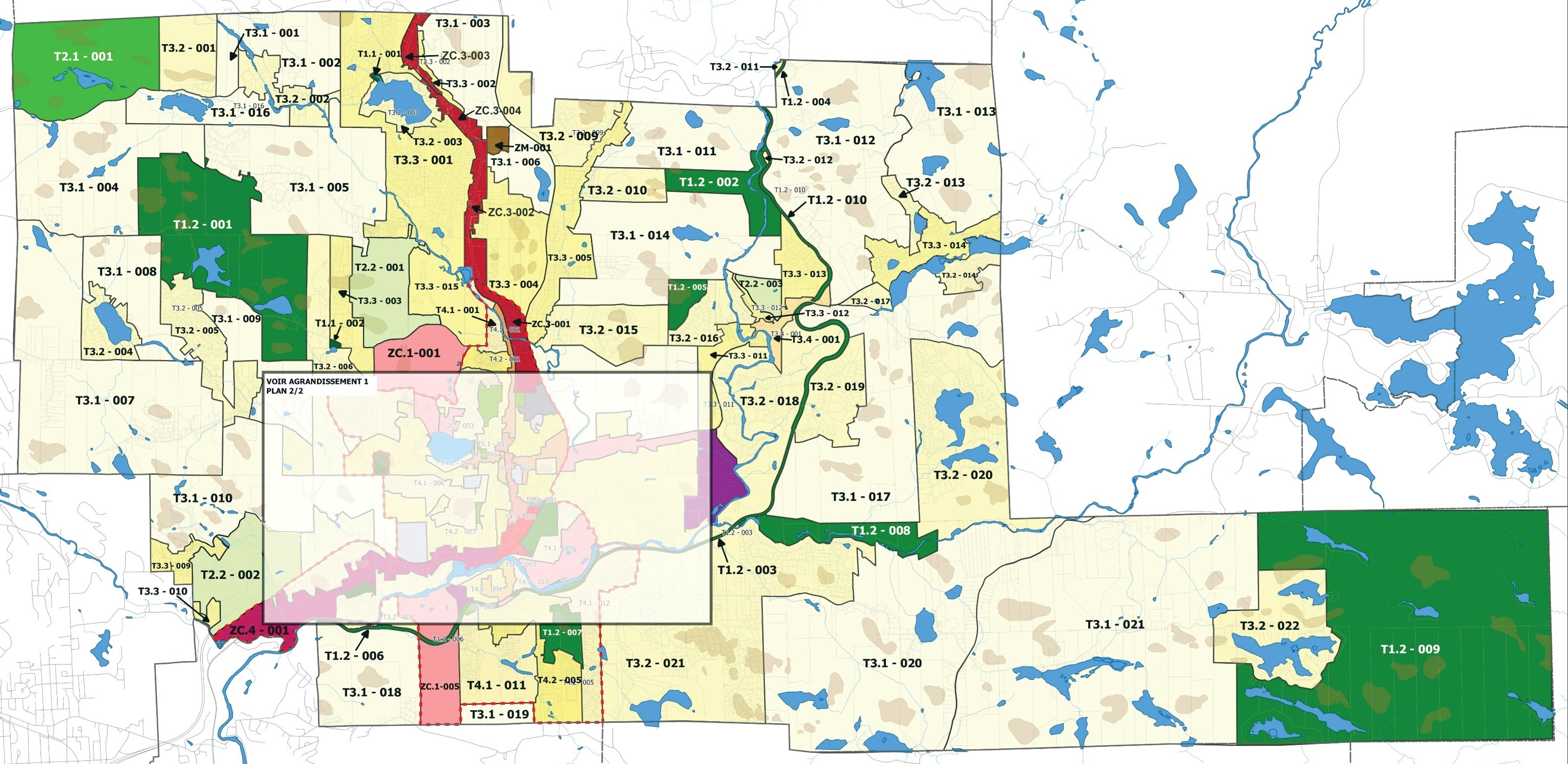 Afin d’en obtenir la géomatique sous-jacente (habituellement sous forme d’un Shapefile) vous pouvez aussi essayer de faire une demande d’accès à l’information. Pour les petites villes, c’est généralement à la MRC qui il faut s’adresser - c’est la raison qu’on voit «Source: MRC des Pays d’en Haut» sur les plans de zonage de Sainte-Adèle et Morin-Heights.