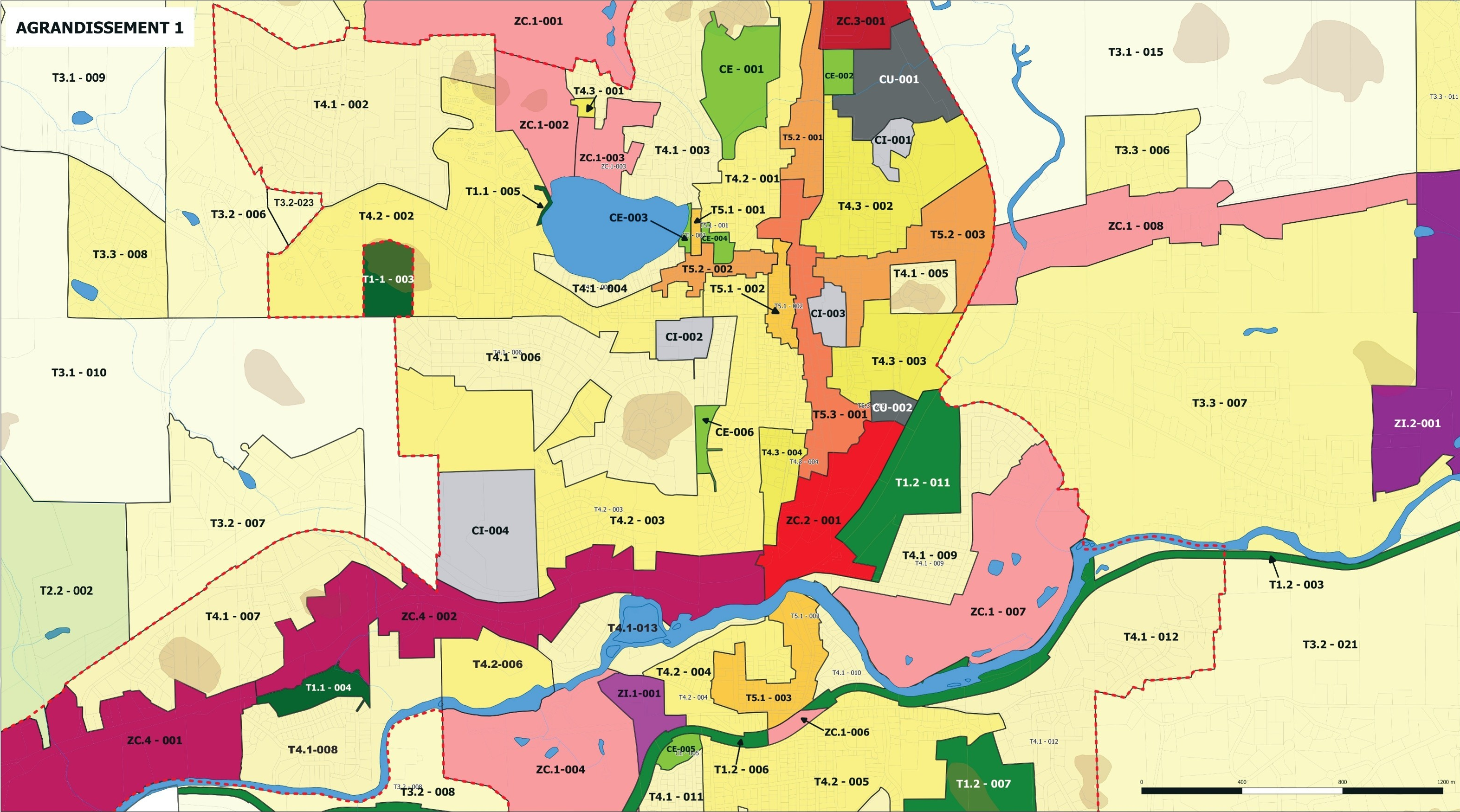Ça nous fais une très belle carte, mais… il faut quand même tracer les zones. Pour celles qui sont plutôt rectiligne, et collées sur les limites de la ville, ce n’est pas trop difficile, mais plusieurs ont des formes très complexes. Il serait donc très utile de pouvoir extraire au moins quelque chose de vectoriel sur lequel on pourait accrocher pour faciliter le traçage.